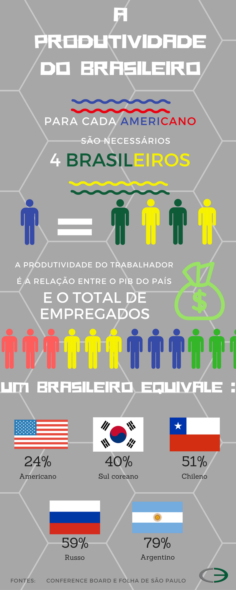A baixa produtividade do trabalhador brasileiro assusta. Para você ter uma ideia são necessários quatro trabalhadores brasileiros para atingir a mesma produtividade de um trabalhador americano.